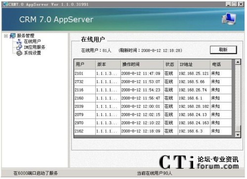 從下圖的列表可以看到實(shí)時(shí)的用戶連接數(shù),每個(gè)客戶端的CPU序列號,硬盤序列,和唯一的登陸序列。并且可以選擇指定的用戶,對用戶做強(qiáng)迫下線,發(fā)送消息,截取用戶屏幕等操作。