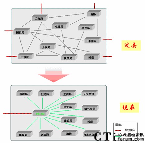 政府服務(wù)熱線以呼叫中心結(jié)合門戶網(wǎng)站和業(yè)務(wù)流程整合,創(chuàng)新了電子政務(wù)應(yīng)用模式,將傳統(tǒng)的電話服務(wù)和網(wǎng)站信息管理及協(xié)同辦公工作流程技術(shù)等結(jié)合,建立了統(tǒng)一的面向公眾服務(wù)的綜合性服務(wù)平”,實現(xiàn)“一站式”服務(wù),完全符合電子政務(wù)的信息化框架。