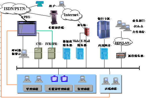 銀行客戶服務(wù)中心采用開放的和可擴(kuò)展的體系結(jié)構(gòu),通過高度靈活的系統(tǒng)平臺,為不同訪問方式的用戶提供多種形式的服務(wù)。