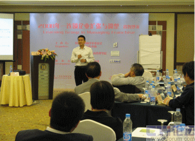 11月16日,20余位連鎖企業(yè)高管放棄周日休息,趕到上海虹橋迎賓館多功能大廳參加由國家發(fā)展和改革委員會(huì)國際合作中心與INSEAD歐洲工商管理學(xué)院聯(lián)合主辦、北京訊鳥軟件組織協(xié)辦的“動(dòng)蕩時(shí)代—連鎖企業(yè)擴(kuò)張與調(diào)整”睿智沙龍活動(dòng)。INSEAD歐洲工商管理學(xué)院的陳教授就當(dāng)今全球經(jīng)濟(jì)動(dòng)蕩時(shí)代,連鎖企業(yè)擴(kuò)張與調(diào)整等課題與參會(huì)者進(jìn)行了深入探討。