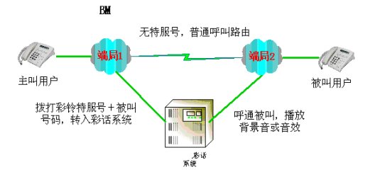 直接撥打?qū)Ψ降奶柎a,自動啟動彩話業(yè)務(wù)。(要求電信運營商的智能網(wǎng)支持)。