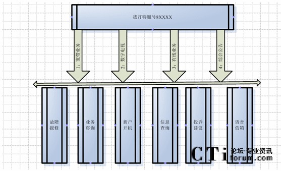 客戶(hù)利用電話(huà)、傳真等撥打某一特服號(hào)碼(如8xxxx)進(jìn)入客戶(hù)服務(wù)中心系統(tǒng),本系統(tǒng)依托各類(lèi)業(yè)務(wù)技術(shù)支持系統(tǒng)和網(wǎng)絡(luò)系統(tǒng),通過(guò)人工受理或自動(dòng)語(yǔ)音服務(wù)等方式全天24小時(shí)不間斷地為客戶(hù)提供各種服務(wù),形成了對(duì)外服務(wù)于客戶(hù)的無(wú)形窗口,對(duì)內(nèi)管理、分析、決策相結(jié)合的客戶(hù)服務(wù)中心。