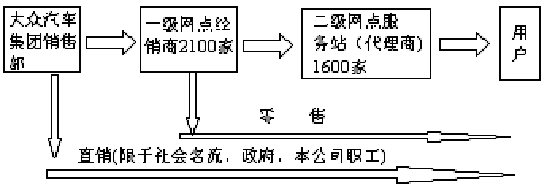 這樣的銷售體制正在逐步向國際市場的規(guī)范方式靠攏。國外的汽車銷售渠道普遍較短,無縱橫交錯現(xiàn)象,非常簡潔。(如圖中2-1)