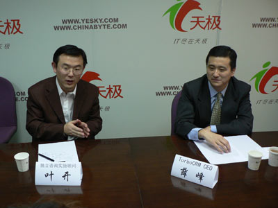 主持人:剖析行業(yè)發(fā)展趨勢,體察企業(yè)e化需求,各位網(wǎng)友下午好,感謝大家關(guān)注本期的e領(lǐng)袖對話。自2002年開始,CRM在中國取得了快速的發(fā)展,但在人們欣慰的同時(shí)還有一個現(xiàn)實(shí)讓CRM的概念可能人盡皆知,但CRM的理念卻遠(yuǎn)沒有深入人心。另外,最近一頓時(shí)間,在領(lǐng)域內(nèi)舉足輕重人物的言行以及一些知名CRM企業(yè)的變數(shù),讓人們對CRM的未來有了各種各樣的猜測和顧慮。那么CRM到底會有一個什么樣的未來,CRM為會帶給中國的企業(yè)用戶一個什么樣的未來,今天我們對話請到的是在CRM領(lǐng)域相當(dāng)資深的兩位嘉賓,看看他們會給我們一個什么樣的答案。今天這個話題引起了網(wǎng)友濃厚的興趣,在進(jìn)來之前很多網(wǎng)友已經(jīng)提出了問題,今天會把網(wǎng)友的問題結(jié)合我們話題一起進(jìn)行,請大家隨時(shí)關(guān)注,首先介紹一下今天來到對話的兩位嘉賓。一位是TurboCRMCEO薛峰。這位是獨(dú)立咨詢實(shí)施顧問葉開老師。首先歡迎兩位到來,今天話題可能跟之前不同,之前會了我們話題,隨后結(jié)合我們網(wǎng)友問題來聊。但是今天網(wǎng)友的問題和今天的主題比較切合,所以就網(wǎng)友問題和我們話題結(jié)合起來進(jìn)行,今天把首發(fā)交給網(wǎng)友,Turbo算是國內(nèi)最大的嗎?先請葉老師回答一下。