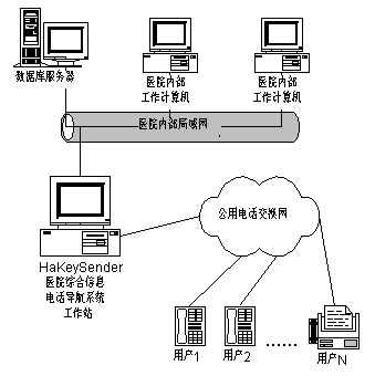 現(xiàn)有醫(yī)院的觸摸屏式導(dǎo)航系統(tǒng)只能局限到醫(yī)院內(nèi)部,如要內(nèi)外結(jié)合,不論是效益或影響力上,都將是很可觀的。HaKeySender醫(yī)院綜合信息電話導(dǎo)航系統(tǒng)正是基于這種考慮,利用現(xiàn)有比較發(fā)達(dá)的電話網(wǎng),跟蹤和吸收發(fā)達(dá)國(guó)家的先進(jìn)技術(shù),采用了計(jì)算機(jī)網(wǎng)絡(luò)技術(shù),數(shù)字信號(hào)處理技術(shù)以及多媒體技術(shù),開(kāi)發(fā)出的智能HaKeySender醫(yī)院綜合信息電話導(dǎo)航系統(tǒng),為各醫(yī)療服務(wù)機(jī)構(gòu)提供了全面有效的解決方案。