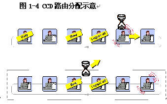 呼叫通過路由選擇到相應(yīng)的座席話機的最大選擇,是評判一個呼叫中心的績效的重要指標(biāo)。CCD主要是負(fù)責(zé)通過有效的方式將呼叫分配到有效的座席,同時對座席人員的技術(shù)熟練程度和相關(guān)的費用因素的綜合考慮。Hakey CCD的呼叫分配是建立在呼叫引導(dǎo)概念基礎(chǔ)上的。CCD具有三個不同的分類:呼叫引導(dǎo)、隊列、資源( 座席或座席組)并通過權(quán)限判別的手段。呼叫的路由通過幾個階段來實現(xiàn)的:處理初期,呼叫被路由到一個等待隊列或到一個公共幫助程序。然后將對每個呼叫當(dāng)前狀態(tài)路由選擇進(jìn)行考慮,考慮因素有:權(quán)限判別、可利用的資源、隊列狀態(tài)、和隊列期望等待時間。任何一個呼叫首先被路由到一個等待隊列中,如果目標(biāo)資源可以利用,呼叫將立即被分配到所選擇的資源組,接著又被分配到組中的相應(yīng)的座席。這就是資源選擇過程。如果系統(tǒng)資源正忙,呼叫將被路由到等待隊列中。隊列中將按照先進(jìn)先出的原則進(jìn)行排隊。隊列的大小取決于隊列的最大等待時間,即:允許呼叫在隊列中等待的最長時間。一旦系統(tǒng)資源變成空閑,隊列中位于等待隊列最前面的最高級別的呼叫將會重新被分配到可以路由的資源中去,呼叫將被立即被分配到組中的座席話機。這就是呼叫選擇的過程。一般情況系統(tǒng)會根據(jù)等待時間或次數(shù)自動按正確的規(guī)則進(jìn)行分配。這些規(guī)則十分靈活,用戶可以按照話務(wù)量的實際情況靈活更改這些規(guī)則。在極端情況下,危險的話務(wù)量出現(xiàn)或相應(yīng)的座席都不能到達(dá)的情況下,允許立即對分配規(guī)則進(jìn)行調(diào)整。如果等待實際太長,可以將這些呼叫重新分配到其他遠(yuǎn)端設(shè)備。以上結(jié)構(gòu),就是HakeyCCD的呼叫路由的工作原理。