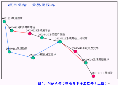 中國網(wǎng)通集團的"中國網(wǎng)通集團大客戶信息管理分析及一站服務(wù)系統(tǒng)"(以下簡稱網(wǎng)通總部CRM項目)的合同簽約儀式在這里舉行,合同總額約為人民幣3000萬元。而作為合同執(zhí)行方的是HOLLYCRM(合力金橋軟件)公司,在一個月前才從北京合力金橋系統(tǒng)集成公司拆分出來。HOLLYCRM的總裁曲道俊先生在拿到這份合同時輕輕松了一口氣,用艱苦卓絕、峰回路轉(zhuǎn)、跌宕起伏等等一系列字眼來形容這連續(xù)4個月的應(yīng)標過程決不為過,畢竟所有的努力并沒有白費。但曲道俊先生并沒有完全沉浸在這種商場角逐取勝的快樂當(dāng)中, 畢竟這么大的一個項目要由一個前身為事業(yè)部的公司來完全承擔(dān)實施畢竟不是一件容易的事, 他馬上整理了思路, 撥通了負責(zé)這個項目實施的項目經(jīng)理盧毅的電話:半小時后我們辦公室見。