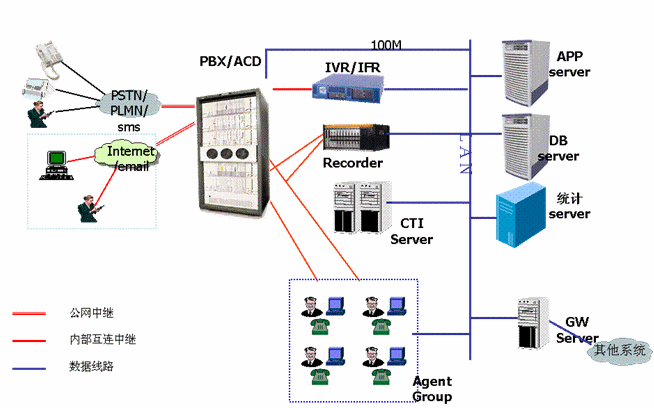 融合業(yè)務(wù)系統(tǒng):呼叫中心與其它業(yè)務(wù)系統(tǒng),如: 營(yíng)業(yè)抄收系統(tǒng)、網(wǎng)站系統(tǒng)、GIS系統(tǒng)、短信系統(tǒng)間通過(guò)接口調(diào)用,統(tǒng)一地結(jié)合在一起,最大化地發(fā)揮了客服作用,能夠?yàn)槭忻裉峁┤轿坏姆⻊?wù);