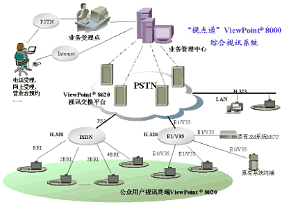 基于電信級視訊業(yè)務(wù)的需求,華為推出新一代的全交換公眾視訊業(yè)務(wù)產(chǎn)品--'視點通'ViewPoint8000綜合視訊系統(tǒng)。'視點通'可以方便地以ISDN撥號接入為主,兼容E1/V.35專線及IP接入的方式,組建綜合視訊業(yè)務(wù)網(wǎng)絡(luò)。 公眾化視訊業(yè)務(wù)的開展不僅可以使ISDN等數(shù)據(jù)交換網(wǎng)絡(luò)又增加了一個極具吸引力的承載業(yè)務(wù),極大地促進了ISDN等數(shù)據(jù)業(yè)務(wù)的推廣,實現(xiàn)現(xiàn)有ISDN等數(shù)據(jù)網(wǎng)絡(luò)的增值,更為重要的是綜合視訊網(wǎng)絡(luò)為電信運營商經(jīng)營視訊業(yè)務(wù)提供了理想的平臺,使得視訊業(yè)務(wù)在各行各業(yè)廣泛應(yīng)用成為可能。