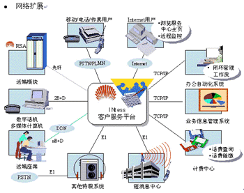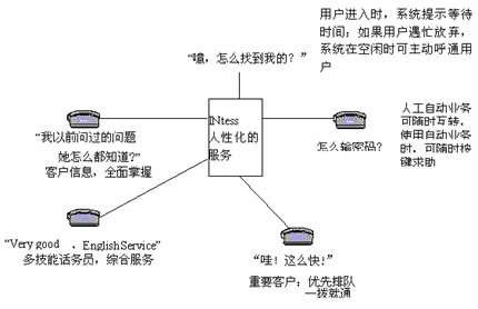 基于CTI(電信和計(jì)算機(jī)集成)技術(shù)和call center(呼叫中心)技術(shù)的INtess客戶服務(wù)平臺,積累網(wǎng)上600多套設(shè)備業(yè)務(wù)開發(fā)和運(yùn)行實(shí)踐的經(jīng)驗(yàn),運(yùn)用專業(yè)化的設(shè)計(jì),全面解決電信客戶服務(wù)中的難題:
