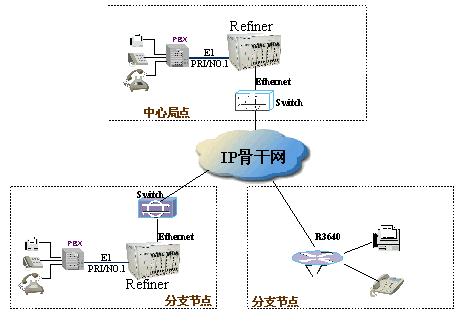 對于銀行、公安這樣的行業(yè)或者大企業(yè)來講,由于比較重視信息化的建設(shè),大都擁有專用的電話通信網(wǎng)和數(shù)據(jù)通信網(wǎng)。電話通信網(wǎng)一般是采用自建電話交換機(PBX)、租用電信部門的中繼線的方式實現(xiàn)的;而數(shù)據(jù)通信網(wǎng)則需要另外租用DDN專線或其他租用線來實現(xiàn)的。這樣,企業(yè)和行業(yè)用戶不僅要在線路租費上需要更大的開支,而且在使用和維護上也有很多不便。信息技術(shù),特別是光纖技術(shù)和Internet技術(shù)的發(fā)展,使大企業(yè)、行業(yè)用戶有能力建設(shè)專用的IP寬帶骨干網(wǎng),用于綜合傳送語音、數(shù)據(jù)和圖象業(yè)務(wù)。而如何將原有的話音網(wǎng)改造成IP電話網(wǎng),使它能夠在IP寬帶骨干網(wǎng)上傳送,將是企業(yè)和行業(yè)用戶進(jìn)行網(wǎng)絡(luò)改造時所關(guān)心的一個重要問題。