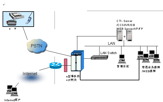 。。華為的INtess®-e型多媒體呼叫中心產(chǎn)品,是集成了交換機(jī)和計(jì)算機(jī)網(wǎng)絡(luò)的系統(tǒng),根據(jù)國(guó)內(nèi)各經(jīng)營(yíng)服務(wù)行業(yè)的業(yè)務(wù)特點(diǎn)和發(fā)展趨勢(shì),以及華為公司對(duì)國(guó)內(nèi)電子商務(wù)發(fā)展的深刻理解,以充分理解和貼近用戶需求為設(shè)計(jì)、開發(fā)理念推出的高集成度的小型呼叫中心平臺(tái)。