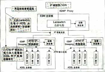 SmartAX MA5300通過XDSL業(yè)務(wù)板的IGMP Snooping功能與主框ESM板的IGMP Proxy配合實現(xiàn)高效的二級復(fù)制組播業(yè)務(wù);驹砣鐖D2所示。