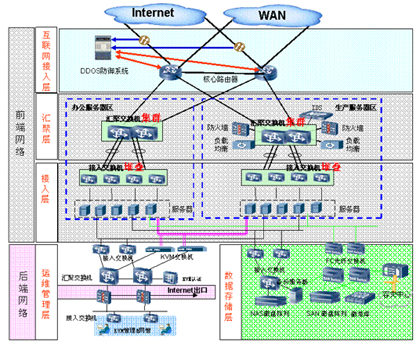所以,按照模塊化的設(shè)計(jì)思想,設(shè)計(jì)的模塊不能太大,也不能太小。采用成熟,先進(jìn)的技術(shù)構(gòu)建網(wǎng)絡(luò),既適應(yīng)了公司業(yè)務(wù)增長(zhǎng)需求,又避免了新技術(shù)造成的風(fēng)險(xiǎn)和成本。