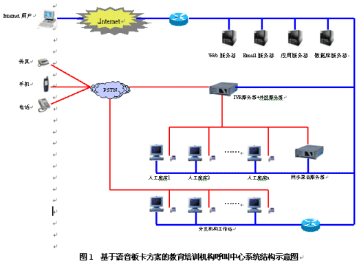 教育培訓(xùn)機(jī)構(gòu)呼叫中心系統(tǒng)是一個(gè)集合電話語音、計(jì)算機(jī)網(wǎng)絡(luò)、數(shù)據(jù)庫等技術(shù)的綜合信息服務(wù)平臺,主要由自動語音應(yīng)答系統(tǒng)、人工座席和數(shù)據(jù)庫系統(tǒng)三部分組成。