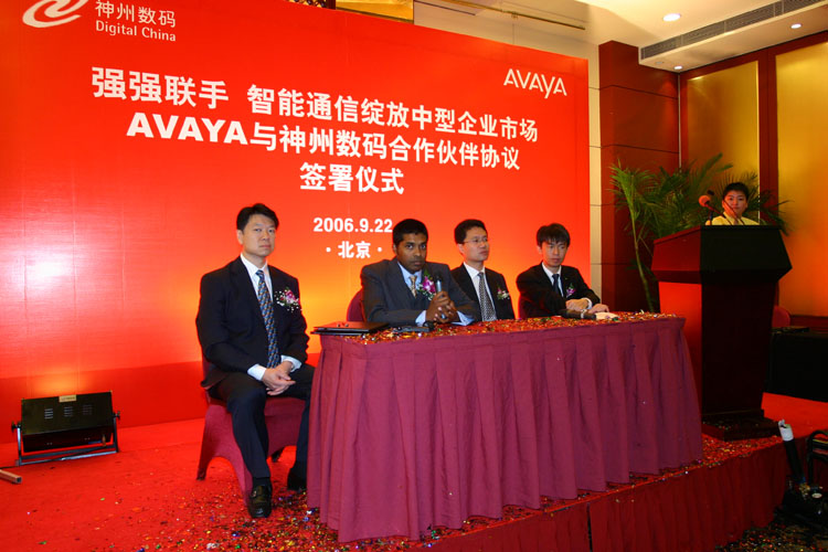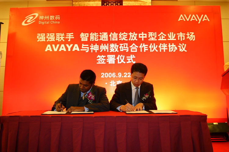 強(qiáng)強(qiáng)聯(lián)手 智能通信綻放中型企業(yè)市場(chǎng) AVAYA與神州數(shù)碼合作伙伴協(xié)議簽署儀式