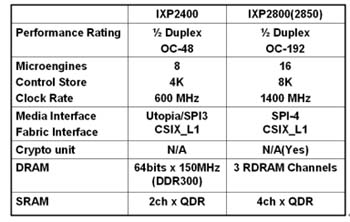 IXP-2800及IXP-2850,請(qǐng)參考表一的性能差異。除此之外,Intel并考慮比照IXP-42X系列做法,高度整合MACs等功能區(qū)塊進(jìn)來(lái),建造優(yōu)異的性?xún)r(jià)比產(chǎn)品,使這一系列處理器的應(yīng)用更普及化。