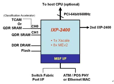 Framer;若是要直接連IP網(wǎng)絡(luò),則MSF接口規(guī)劃成SPI-3或是CSIX,連接像Intel