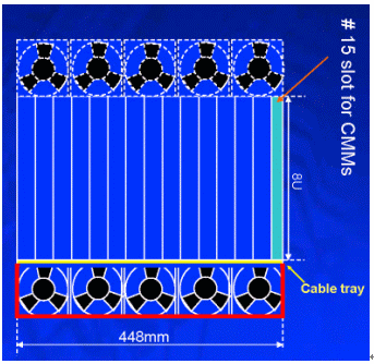 另外在機(jī)架內(nèi)的放置空間上,42U的標(biāo)準(zhǔn)機(jī)架里可以放3臺12~14U機(jī)箱,若將機(jī)箱降至10U則可以放置4臺,這樣可以增加整體空間的利用率,所以有了10U機(jī)箱的設(shè)計(jì)需求。在各種不同高度的機(jī)箱設(shè)計(jì)中,風(fēng)扇散熱系統(tǒng)的放置位置、方式與總散熱效能能夠達(dá)到200*14=2800W,將會是ATCA機(jī)箱設(shè)計(jì)所要考慮的最重要因素之一,尤其是在10U的機(jī)箱設(shè)計(jì)上。