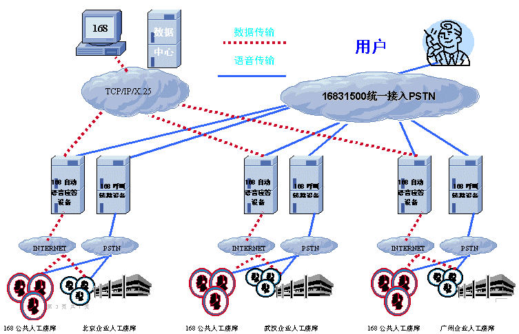 近期,從中國(guó)電信數(shù)據(jù)業(yè)務(wù)主管部門得知,中國(guó)電信168系統(tǒng)通過(guò)一期的聯(lián)網(wǎng)改造,已經(jīng)可以在全國(guó)一百多個(gè)城市提供同步的自動(dòng)語(yǔ)音服務(wù),其中十幾個(gè)省份開通本地人工座席的接入服務(wù)以及公共的人工座席出租服務(wù)。企業(yè)可以租用該平臺(tái)的特服接入號(hào)碼,將全國(guó)各地的服務(wù)分支機(jī)構(gòu)組建成大型的呼叫中心,為各地的用戶提供高效的自動(dòng)和人工服務(wù)。在所有開通城市消費(fèi)者均可以得到以市話標(biāo)準(zhǔn)的統(tǒng)一自動(dòng)語(yǔ)音服務(wù)支持,同時(shí),消費(fèi)者在自動(dòng)語(yǔ)音的提示下可以與當(dāng)?shù)鼗虍惖氐娜斯ぷ〉寐?lián)系。企業(yè)端的接入設(shè)備可以是標(biāo)準(zhǔn)的呼叫中心人工座席,也可以是集團(tuán)電話或公司總機(jī),甚至于可以是一部普通電話,而且企業(yè)整個(gè)服務(wù)過(guò)程中不用承擔(dān)被叫通信費(fèi)用。