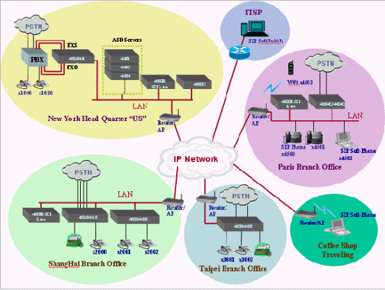 MOSA的SIP IP-PBX是一個(gè)完整的商用交換機(jī)系統(tǒng),能提供企業(yè)完整的通信服務(wù),因應(yīng)各種不同接口的連結(jié)需求,例如公眾電信系統(tǒng)(PSTN)、SIP服務(wù)商、傳真機(jī)、電話機(jī)、語音信箱、SIP IP Phone、SIP Soft-phone、Wifi-Phone以及各種SIP終端設(shè)備等等,MOSA的SIP IP-PBX提供模塊化的接口連接設(shè)備,每一種接口連接設(shè)備均配備有以太網(wǎng)絡(luò)接口,可以透過IP網(wǎng)絡(luò)相互連結(jié),使得各分公司之間通信零距離。MOSA SIP IP-PBX除了解決基本的接口連接外,也提供各式各樣的應(yīng)用服務(wù)服務(wù)器(Application Service Devices),增進(jìn)整體系統(tǒng)的功能,譬如:網(wǎng)絡(luò)型電話會(huì)議,網(wǎng)絡(luò)型廣播,移動(dòng)辦公功能等。
