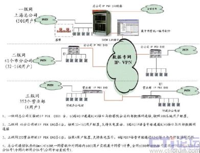 多個用戶,覆蓋1 個總公司、41 個分公司和352 個營業(yè)部。在設(shè)計(jì)組網(wǎng)方案時,阿爾卡特朗訊根據(jù)用戶的需求和實(shí)際情況,并充分考慮現(xiàn)有的數(shù)據(jù)網(wǎng)絡(luò)資源,提出采用星狀網(wǎng)絡(luò)組網(wǎng)結(jié)構(gòu)建設(shè)PBX