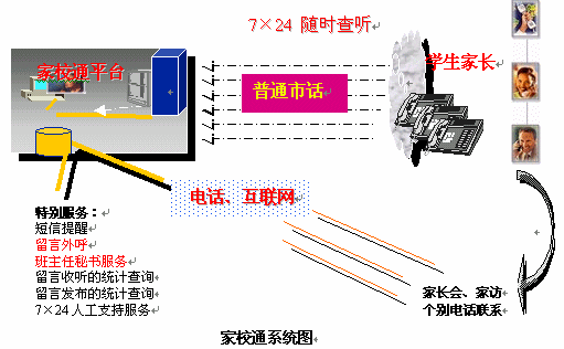 如今社會環(huán)境日益復雜化,學校和學生家長越來越迫切地要求加強相互間的聯(lián)系和溝通,以共同教育青少年健康成長。但老師和家長雙方在溝通的選擇上都比較被動,存在著明顯的局限性。由于缺乏溝通,家長無法了解孩子每天的在校情況(如:放學時間、課堂表現(xiàn)等)、老師個性化的教育輔導(如:作業(yè)輔導、考試安排與輔導)以及學校公告等,對于孩子說的"今天沒有家庭作業(yè)"或"因為課外活動所以回來晚了"等情況無從考證,也很難及時發(fā)現(xiàn)問題并配合老師管理,個性化的家;咏逃鼰o從開展。因此,幫助學校與家長搭建有效的溝通橋梁,加強對未成年人的保護,用現(xiàn)代通信技術為他們創(chuàng)造良好的成長環(huán)境已是大勢所趨。