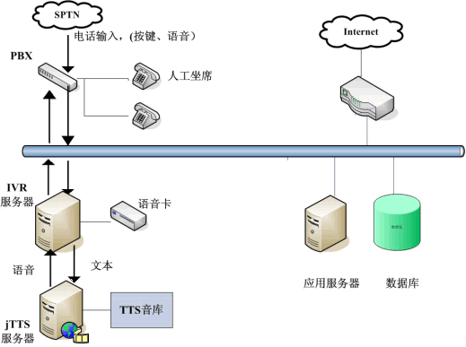 jTTS在12320中的應(yīng)用主要表現(xiàn)在查詢(xún)結(jié)果的語(yǔ)音返回和服務(wù)信息的發(fā)布上。只要將捷通TTS服務(wù)器集成到現(xiàn)有的IVR系統(tǒng)中,并且在IVR服務(wù)端設(shè)置好預(yù)讀出的文本即可。眾所周知,“12320”公益服務(wù)熱線(xiàn)需要提供海量關(guān)于我國(guó)公共衛(wèi)生相關(guān)法律法規(guī)、各種重大疾病的預(yù)防保健知識(shí)的宣傳和咨詢(xún)服務(wù),如果采用傳統(tǒng)人工座席或請(qǐng)專(zhuān)業(yè)播音人員錄音,費(fèi)時(shí)費(fèi)力,且投入較大。用語(yǔ)音合成技術(shù)(TTS)來(lái)解決,用戶(hù)提交查詢(xún)請(qǐng)求,IVR服務(wù)器收到請(qǐng)求后會(huì)向其他應(yīng)用服務(wù)器提交,當(dāng)IVR得到查詢(xún)結(jié)果后,將文本形式的查詢(xún)結(jié)果交給jTTS服務(wù)器,jTTS服務(wù)器返回查詢(xún)結(jié)果的語(yǔ)音形式,最終語(yǔ)音在坐席上播放,用戶(hù)就可以聽(tīng)到所要查詢(xún)的信息(如圖)。這樣市民可以24小時(shí)撥打熱線(xiàn),查詢(xún)各方面的內(nèi)容,不受時(shí)間限制,既節(jié)約政府開(kāi)支,為民辦實(shí)事,而且在最大程度上提高了辦事效率,樹(shù)立了良好的政府形象。