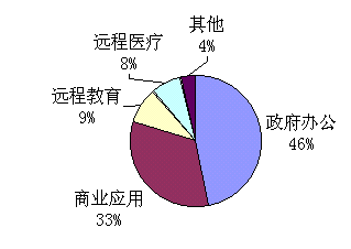視頻會(huì)議系統(tǒng)在我國(guó)開(kāi)始發(fā)展的初期,政府部門(mén)及電信、金融、電力、鐵路等壟斷性行業(yè)的應(yīng)用占據(jù)了絕大部分的市場(chǎng)份額。近年來(lái)隨著電子政務(wù)工程的逐步推進(jìn),政府部門(mén)更加關(guān)注視頻會(huì)議系統(tǒng)建設(shè)。在經(jīng)濟(jì)發(fā)達(dá)地區(qū)(例如浙江、山東、廣東),視頻會(huì)議網(wǎng)已覆蓋到地市級(jí)城市,有的甚至覆蓋到縣一級(jí)。除各級(jí)政府之外,其它諸如檢察院、法院、公安和水利等職能部門(mén)也是視頻會(huì)議系統(tǒng)的重要用戶(hù)。賽迪網(wǎng)曾對(duì)視頻會(huì)議系統(tǒng)的應(yīng)用現(xiàn)狀做過(guò)調(diào)查,發(fā)現(xiàn)政府辦公占全部市場(chǎng)份額的46.6%,電信、金融、鐵路、電力等行業(yè)占據(jù)了33.2%的市場(chǎng)份額,而遠(yuǎn)程教育和遠(yuǎn)程醫(yī)療由于尚處于發(fā)展初期,所占份額分別是8.7%和7.9%。
