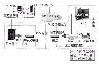 本會議電視系統(tǒng)的網(wǎng)絡(luò)接口全部采用了成本較低的V.35接口,并利用節(jié)省下的投資,為用戶購置了圖文攝像機(jī),方便了用戶召開技術(shù)培訓(xùn)和案例分析會議。