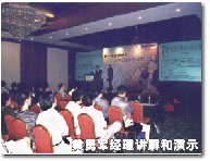 通過兩位演講者深入淺出的講解,看來聆聽者已經(jīng)對(duì)文正明的iUnicenter網(wǎng)絡(luò)化客戶服務(wù)中心的構(gòu)成、應(yīng)用有了大致的了解,但與會(huì)的證券業(yè)人士關(guān)心的不僅是這套解決方案理論上的優(yōu)越,他們更渴望見到實(shí)際上的表現(xiàn)如何,于是,文正明公司規(guī)劃發(fā)展部付總經(jīng)理黃勇軍就用一氣呵成的模擬演示給了他們完美的答案。