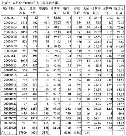 系統(tǒng)在2002年6月份的系統(tǒng)話務量情況見附表1。