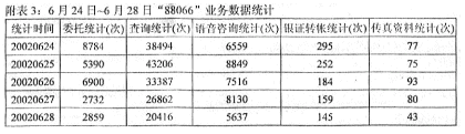 從(附表1)系統(tǒng)話務量的數據中可以看到系統(tǒng)每天電話接入量平均在一萬以上,每個電話通話均長在2-3分鐘,"88066"已經成為客戶進行委托查詢等業(yè)務操作的重要手段之一。從表中還可以看到在大呼叫量的情況下,電話總接通率保持在99%以上,說明系統(tǒng)是穩(wěn)定的,可以經受住大呼叫量接入。