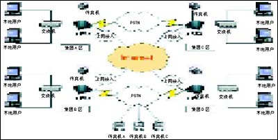 3.系統(tǒng)內(nèi)用戶發(fā)送傳真說(shuō)明:集團(tuán)A區(qū)的用戶如果發(fā)送本地傳真,則在集團(tuán)A區(qū)的e-FAX網(wǎng)絡(luò)傳真機(jī)收到任務(wù)請(qǐng)求后,通過(guò)本地的PSTN網(wǎng)絡(luò)發(fā)送傳真,傳真發(fā)送成功后,系統(tǒng)自動(dòng)給發(fā)送人一份傳真通報(bào),發(fā)送完成;集團(tuán)A區(qū)的用戶如果發(fā)送外地傳真,例如發(fā)送到集團(tuán)D區(qū),集團(tuán)A區(qū)的e-FAX網(wǎng)絡(luò)傳真機(jī)會(huì)自動(dòng)根據(jù)收到的任務(wù)請(qǐng)求信息進(jìn)行判斷,根據(jù)判斷的信息,將發(fā)送傳真請(qǐng)求和相應(yīng)的傳真文件通過(guò)Internet路由到集團(tuán)D區(qū)的e-FAX網(wǎng)絡(luò)傳真機(jī),集團(tuán)D區(qū)的網(wǎng)絡(luò)傳真機(jī)收到訊息后,會(huì)自動(dòng)通過(guò)本地的PSTN發(fā)送傳真任務(wù),發(fā)送結(jié)果會(huì)自動(dòng)通報(bào)到集團(tuán)A區(qū)的發(fā)送人,發(fā)送完成。同理,在集團(tuán)的其他區(qū)域內(nèi)的發(fā)送傳真請(qǐng)求都會(huì)自動(dòng)路由,判斷發(fā)送方式,從而完成發(fā)送任務(wù)。