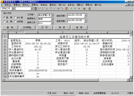 指定坐席的工作狀態(tài)(坐席工號、分機(jī)號碼、業(yè)務(wù)類型、忙閑狀態(tài)、通話時(shí)長等)