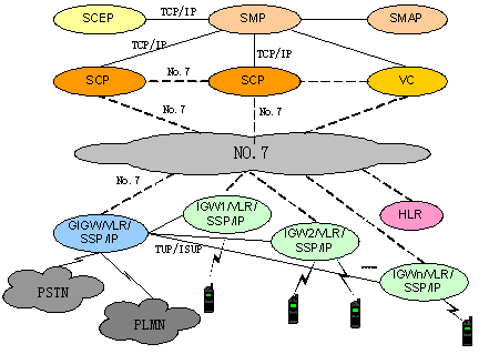 中興PCS智能網(wǎng)可根據(jù)用戶(hù)需要采用多種靈活的組網(wǎng)方案,既可全省或多地區(qū)集中建設(shè)一套平臺(tái),充分節(jié)約投資和快速進(jìn)行業(yè)務(wù)提供,又可按地市單獨(dú)建設(shè),充分保證業(yè)務(wù)的靈活性。系統(tǒng)支持與其他PCS網(wǎng)絡(luò)的良好互通,可同時(shí)為其它系統(tǒng)提供PCS智能業(yè)務(wù)。中興PCS智能網(wǎng)基于No.7信令與交換網(wǎng)絡(luò)連接,不占用話路資源,采用嵌入式組網(wǎng),智能業(yè)務(wù)采用簽約信息觸發(fā),SSP(Service Switch Point)和SCP(Service Control Point)之間采用No.7信令進(jìn)行通信,在這種組網(wǎng)方式下,不存在話路迂回,有效節(jié)約運(yùn)營(yíng)商寶貴的網(wǎng)絡(luò)資源,并可以根據(jù)簽約信息靈活開(kāi)展多種智能業(yè)務(wù),智能網(wǎng)信令也能很好地支持用戶(hù)的移動(dòng)性,給用戶(hù)提供更靈活、方便和個(gè)性化的服務(wù)。