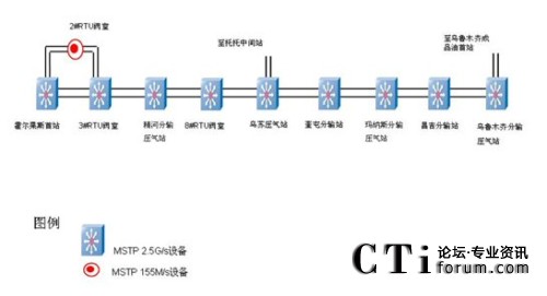 西氣東輸二線管道工程干線霍爾果斯-中衛(wèi)光纜線路西起霍爾果斯首站,終止于中衛(wèi)聯(lián)絡站。本工程A包新建站場包括霍爾果斯首站、精河分輸壓氣站、烏蘇壓氣站、奎屯分輸站、瑪納斯分輸壓氣站、昌吉分輸站、烏魯木齊分輸壓氣站,以及2#RTU閥室、3#RTU閥室、8#RTU閥室,傳輸網(wǎng)絡拓撲圖如圖所示;魻柟故渍尽獮豸斈君R分輸壓氣站間(含烏魯木齊分輸壓氣站)采用MSTP