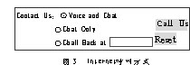 客戶服務(wù)中心系統(tǒng)提供的Internet服務(wù)方式包括:VoIP(即Internet上的語(yǔ)音交談)、Text Chat(文本方式的交談)、PSTN Call Back(電話回呼)、E-mail 以及伴隨瀏覽和網(wǎng)頁(yè)共享等(圖3)。