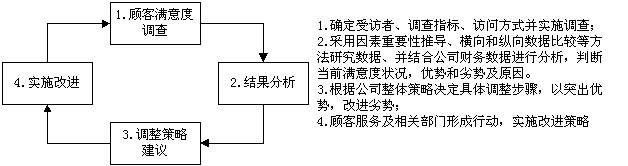 顧客滿意度調(diào)查和客戶投訴和建議處理系統(tǒng)、神秘顧客調(diào)查、流失客戶分析是當(dāng)前企業(yè)收集客戶意見的四種主要方法。其中,顧客滿意可以運(yùn)用幾種方法衡量。它可以通過詢問直接衡量:“請按下面的量度說出你對某服務(wù)的滿意程度:很不滿意、不太滿意、一般、比較滿意、很滿意”(直接報告滿意程度)。還可以要求受訪者評價他們期望一個什么樣的產(chǎn)品屬性,以及他們實(shí)際得到的是什么(引申出來的不滿意)。另外一種方法是要求受訪者列出他們在產(chǎn)品上發(fā)現(xiàn)的任何問題和他們能建議的任何改進(jìn)措施(問題分析)。最后,公司可以要求受訪者按產(chǎn)品各要素的重要性不同進(jìn)行排列,并對組織在每個要素上的表現(xiàn)作出評價(重要性/績效等級排列)。最后一種方法可以幫助公司了解它是否在一些重要的要素方面表現(xiàn)不佳,或在一些相對不重要的要素方面過于投入。而且,研究顯示,在收集有關(guān)顧客滿意的信息時,詢問顧客再次購買和再次推薦的問題,也是十分有價值的,它們共同構(gòu)成了顧客滿意度調(diào)查指標(biāo)。