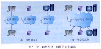 技術(shù)上的融合與結(jié)合是指中繼線、交換機、有線鏈路、無線鏈路、客戶設(shè)備等可承載各種類型的業(yè)務(wù)。