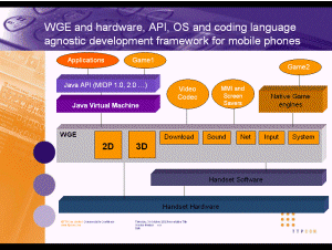 TTPcom開(kāi)發(fā)的平臺(tái)加速解決方案,是通過(guò)名為"無(wú)線圖形引擎"(Wireless Graphics Engine,WGE)的開(kāi)放式應(yīng)用編程接口(API),對(duì)手機(jī)設(shè)備上的所有圖形應(yīng)用進(jìn)行加速,其效果等同于個(gè)人計(jì)算機(jī)上的圖形加速卡。WGE可以加快建模和渲染速度,并提高圖形顯示的幀速率,以改善手機(jī)圖形處理的整體表現(xiàn),讓用戶充分體驗(yàn)到更出眾的系統(tǒng)性能。WGE的設(shè)計(jì)初衷旨在令A(yù)RM 7架構(gòu)手機(jī)(全球市場(chǎng)約有百分之七十二的手機(jī)均支持ARM 7處理器)的圖像性能,可以媲美任天堂公司推出的同樣基于ARM 7架構(gòu) 的 GameBoy掌上游戲機(jī)。2002年初,GameBoy的ITE游戲 "Hugo and the Evil Mirror"被成功引入至WGE支持設(shè)備,為入門(mén)級(jí)手機(jī)用戶提供了真正的GameBoy體驗(yàn),從而證明WGE完全可以達(dá)到其設(shè)計(jì)目標(biāo)。