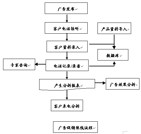 廣告熱線是在呼叫中心系統(tǒng)中設(shè)立專欄,為廣告中的產(chǎn)品或服務(wù)提供更詳細(xì)的資料。首先應(yīng)將需要在廣告中出現(xiàn)的詳細(xì)內(nèi)容或不適合在廣告中出現(xiàn)的內(nèi)容按照要求導(dǎo)入呼叫中心系統(tǒng),準(zhǔn)備就緒后,就在媒體或其他介質(zhì)上做廣告,其中廣告的內(nèi)容中含廣告熱線號碼。電話號碼建議采用800電話,以提高客戶撥打電話的積極性。呼叫中心會記錄打進(jìn)的每一個電話,并且提供完成的系統(tǒng)報表。這樣可以彌補廣告中提供給消費者內(nèi)容不足的缺陷,另一方面可以根據(jù)電話量判斷廣告的效果。