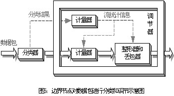 從功能上,調(diào)節(jié)器可分為計量器(meter)、標記器(marker)、整形器(sharper)和丟包器(dropper)。