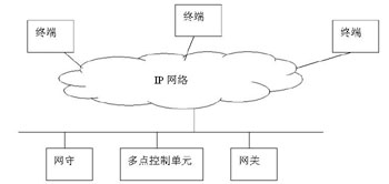 基于H.323的軟件視頻會議系統(tǒng)由相應(yīng)的協(xié)議族提供支持,使得這樣的系統(tǒng)能夠有很強的適應(yīng)性、兼容性。H.323建議的多媒體會議系統(tǒng)不是基于客戶服務(wù)器結(jié)構(gòu),而是基于傳統(tǒng)的電話呼叫網(wǎng)絡(luò)模式。H.323為基于網(wǎng)絡(luò)的通信協(xié)議定義了4個主要的組件:終端(Terminal)、網(wǎng)關(guān)(Gateway)、網(wǎng)守(Gatekeeper)和多點控制單元(MCU);就?fù)浣Y(jié)構(gòu)結(jié)構(gòu)如圖: