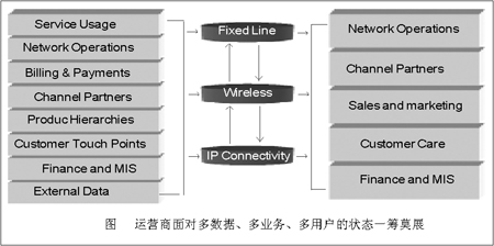 “很淺顯地說(shuō),就目前國(guó)內(nèi)運(yùn)營(yíng)商的分析水平而言,問(wèn)題并不是出在工具上,對(duì)于一些省級(jí)運(yùn)營(yíng)商而言,無(wú)論是集成商、還是系統(tǒng),都可以說(shuō)已經(jīng)采用了全球領(lǐng)先供應(yīng)商的產(chǎn)品,但具體到業(yè)務(wù)上,由于長(zhǎng)期以來(lái)的模式尚未改變,有可能到客戶調(diào)查時(shí)才發(fā)現(xiàn),電話占用號(hào)碼的客戶已經(jīng)停機(jī)了,而調(diào)查人員卻不能實(shí)時(shí)看到業(yè)務(wù)收入表,更準(zhǔn)確地說(shuō),針對(duì)同一客戶,他用了哪些業(yè)務(wù)?是單一業(yè)務(wù)還是多種業(yè)務(wù)?是優(yōu)惠業(yè)務(wù)還是正常業(yè)務(wù)?服務(wù)坐席都有可能無(wú)法立即獲得實(shí)時(shí)數(shù)據(jù),這樣的前提下,再怎么說(shuō)計(jì)費(fèi)系統(tǒng)、融合業(yè)務(wù)、服務(wù)質(zhì)量,都不具現(xiàn)實(shí)意義!鄙綎|網(wǎng)通計(jì)費(fèi)部門一位不愿意透露姓名的副主任級(jí)主管告訴記者。
