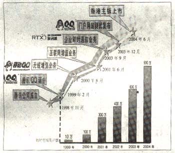 正是憑借著這些優(yōu)勢(shì),即時(shí)通信吸引聚集著一些忠誠用戶,并開始搭建網(wǎng)絡(luò)廣告、無線增值等一系列各種潛在的交易平臺(tái)。可以想象,一個(gè)絕佳的聊天窗口同時(shí)也是一個(gè)方便的交易窗口和暢通的付費(fèi)入口,即時(shí)通信正在摸索一條前所未有的盈利模式。有專家指出,經(jīng)過近5年的曲折前行,即時(shí)通信的盈利模式將在2005年逐步明確。以騰訊QQ為例,我們來剖析一下即時(shí)通信的盈利模式是如何由模糊走向清晰的。從1999年2月QQ發(fā)布到2000年5月,QQ迅速聚攏了10萬用戶。2000年8月,騰訊公司同廣東移動(dòng)合作,僅僅用了一年就扭虧為盈,實(shí)現(xiàn)了1000萬人民幣的純利潤。
