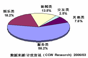 2006年,IVR業(yè)務(wù)的發(fā)展已經(jīng)具備了良好的外部條件。首先,具有龐大的潛在用戶群。有關(guān)統(tǒng)計顯示,截至2005年11月,中國移動用戶數(shù)量達到3.88億,固定電話用戶數(shù)量達到3.51億,其中無線市話用戶數(shù)量達到8622萬。其次,市場容量急劇膨脹;再次,業(yè)務(wù)收入快速增長;最后,IVR不受手機型號的限制,潛在用戶的普及率極高。這些使得IVR具有良好的發(fā)展?jié)摿,計世資訊(CCW Research)認為,IVR是繼短信(SMS)之后的又一座大型金礦。