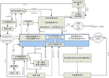 “3”指市決策指揮中心、各區(qū)縣指揮中心、專項指揮部及相關委辦局與社會綜合服務部門: