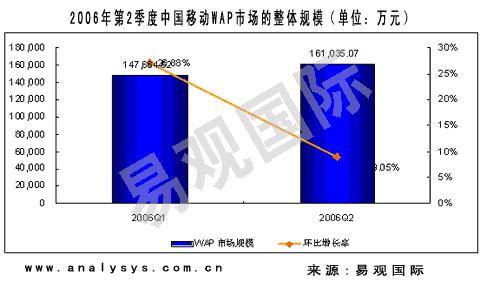 圖:2006年第二季度中國(guó)移動(dòng) WAP 市場(chǎng)的整體規(guī)模