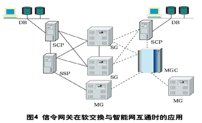 對現(xiàn)有的智能網(wǎng)來說,軟交換以及它所控制的節(jié)點(diǎn)構(gòu)成一個(gè)虛擬的SSP,可在INAP/CAP/TCAP/SCCP接口上通過信令網(wǎng)關(guān)與現(xiàn)有智能網(wǎng)中的SCP互通,共同提供智能網(wǎng)業(yè)務(wù),或者直接和IP